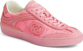 Interlocking-G logo appliqués, GG Supreme canvas, and suede overlays enhance the bold attitude of this monochrome sneaker, another casually cool style from the iconic Italian house.