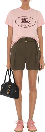Shorts made from Italian-woven cotton gabardine, tailored to a relaxed fit with double pleats. The design features a matching fabric belt detailed with our signature B buckle and D-ring hardware.||Hook, button and zip closure|Side slip pockets, back button welt pocket|B buckle belt|Embrodiered Equestrian Knight Design at hem