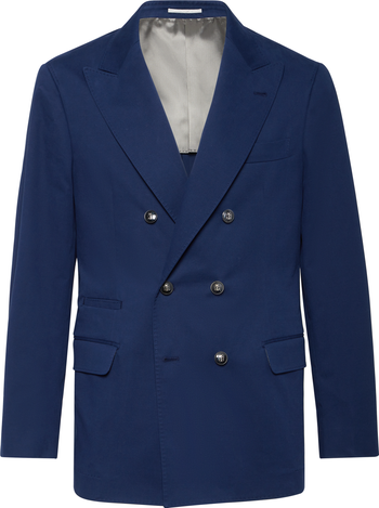 - Resin buttons closurePeak lapelWelt pockets with flap, ticket pocket and chest pocketCuffs have four horn buttons and functional buttonholesCupro half liningTwo interior pockets with button closure and pen holderDouble back ventDrop 7
