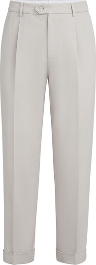 - Zip closure with button, metal hook and backing buttonSlanted front pocketsPleatBack welt pocketsCuffed hem