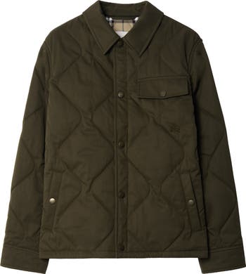 An overshirt in cotton nylon gabardine, washed for a soft finish and padded for warmth. Part of our Gabardine Capsule, the design pays homage to the house’s iconic signature – a revolutionary fabric invented by Thomas Burberry, worn by explorers and everyday adventurers alike. Inside the jacket is lined with the Burberry Check and features a specially designed label inspired by an archival campaign. Cut to a regular fit, the press-stud style is embroidered with a tonal Equestrian Knight Design.||Press-stud closure|Chest press-stud flap pocket, side press-stud pockets|Press-stud cuffs|Embroidered Equestrian Knight Design at chest|Burberry Check lining|Comes with a garment bag
