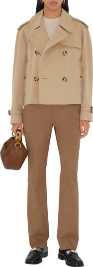 Trousers made in Italy from cotton gabardine woven at the Burberry Mill. The style is unlined and tailored to a slim fit with an Equestrian Knight Design tag at the belt loop.||Hook, button and zip closure|Side slip pockets, back welt pockets