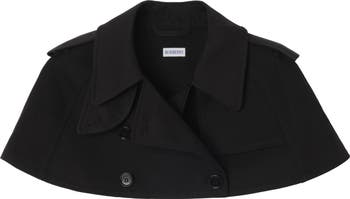 A capelet crafted in Castleford, Yorkshire from shower-resistant cotton gabardine. Inspired by an archival silhouette, the super-cropped style features signature rainwear details, including a gun flap, epaulettes and a shield-shaped throat latch. A statement piece for layering.||Double-breasted button closure|Throat latch|Epaulettes|Gun flap at shoulder|Comes with a garment bag