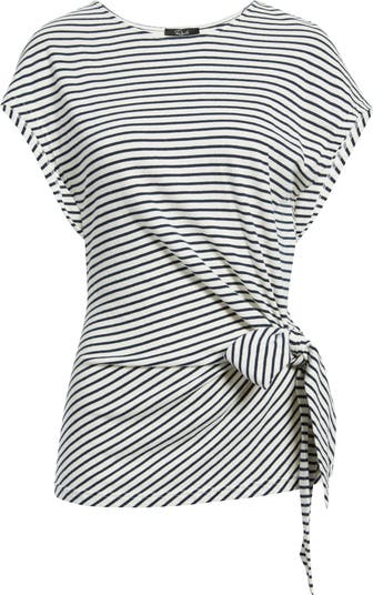 A defining tie shapes the silhouette of this soft cotton top covered in lively stripes.