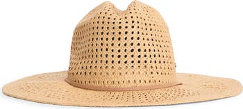 An adjustable chin strap ensures a secure fit with this fedora hat crocheted from paper to bring unmistakable summer style to warm-weather looks.