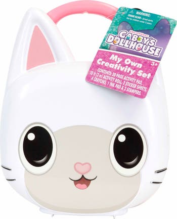 MY OWN CREATIVITY SET: GABBY'S DOLLHOUSE - Get their attention with this packaging! The activities inside will provide lots of fun! Use the unique character case to store all components back inside and the handle makes it perfect to take on the go. Includes an activity pad, activity roll, 2 sticker sheets, 4 pack crayon box, 1 inkpad, and 2 stampers – all secured within the sturdy plastic case with an easy snap closure! The character kit provides tons of coloring and stickering fun! Every element is carefully curated to ensure endless joy! Whether at home or on the go, the convenient handle ensures portable creativity, transforming every moment into an opportunity for artistic expression. Perfect for kids aged 3-8, this set guarantees hours of entertainment, making it an ideal gift for birthdays or any occasion. Spark their joy, unlock their creativity, and let their imagination run wild with our extraordinary coloring adventure set!