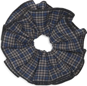 A plaid scrunchie adds a playful touch for your updo while keeping your tresses in place.