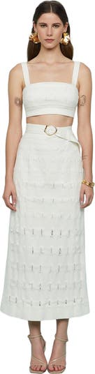 This laser-cut crop top features raw detailing and adjustable buckle straps for a perfect fit: a statement piece with endless versatility.