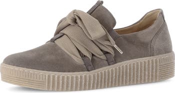 A glossy finish and statement laces define this platform sneaker handcrafted in Italy from premium leather.
