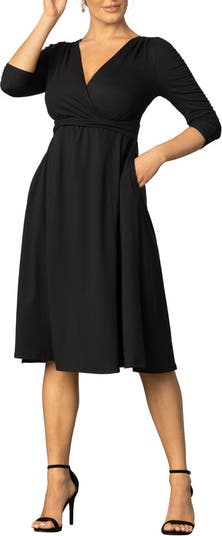 You'll feel beautiful in our retro-inspired Gabriella Ruched Sleeve Midi Dress. This flattering stretch jersey A-line dress is designed with a surplice bodice, 3/4 length sleeves, and pockets. Soft jersey fabric fits beautifully without clinging. Available in women's regular and plus sizes.
