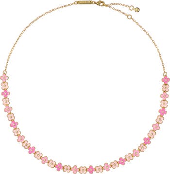 Shimmering crystals center each enameled bloom that's strung on a choker necklace designed to bring a fun flourish to everyday looks.