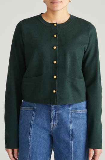Cozy up to the season in this warm cardigan embellished with polished buttons for an added lift of elegance.