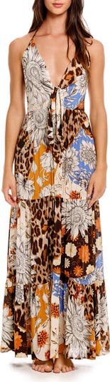Gabrielle Quilt Tue Front Halter Cover-Up Maxi Dress.