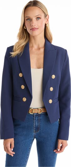 Perfectly polished and forward - the Gabrielle Blazer is a must-have season after season. This classic double-breasted style features a tailored waist to accentuate the figure, peaked lapels, and flap pockets. Fully lined and finished in luxurious suiting fabric, this style is finished with our signature embossed-dome buttons. Wear it with our coated jeans and a tee for an elegant everyday look or pair with a trouser for office-to-evening.