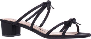 Delicate bows detail the straps of an elegant slide sandal set on a cushioned footbed and wrapped block heel.