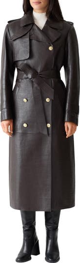 Commanding epaulets and a waist-cinching belt add classic touches to a sleek trench coat made from supple lambskin leather and is fully lined (including sleeves), so it's easy to slip on and off.