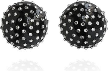 A rhinestone-spotted spin on our classic statement studs, the Gaia Jet Earrings deliver ultra glam appeal. | Inspired by the Greek Goddess Gaia—mother of the earth and all life upon it. | Gaia’s earth-dome shape and delicate crystals bring bold, modern elegance to your look. | The design balances smooth, hand-painted texture with sparkling, dotted details. | Materials: Non-toxic Paints (ACMI’s Approved Product Seal), Preciosa® Crystals, Wood Base, Upcycled Vegan Leather Backing, Platinum-plated Brass Hardware / Nickel Free | Size: 1” | Weight: 0.18 oz |