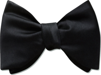 If regular sized black charmeuse bow ties aren't enough, this oversized take on the classic jumbo butterfly bow is created in shiny black silk charmeuse and is an optimal choice for any special occasion. The bow tie measures approximately 3 5/8" in height at the ends and averages 5 1/2" in width.