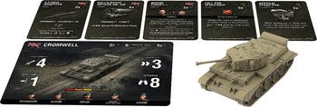 WORLD OF TANKS: BRITISH (CROMWELL): MINIATURES GAME EXPANSION - The Cromwell tank was one of a series of cruiser tanks fielded by the British in World War II. The concept of cruiser tanks was that they would combine speed with numbers, allowing them to swarm the enemy and overwhelm them. First deployed during the invasion of Normandy it found a natural home in the reconnaissance regiments where it's excellent speed and low profile made it difficult to hit. The Cromwell Expansion Pack includes the same great model from the Starter Set but has a new range of cards that you can use to equip and personalize your tank on the battlefield. Includes: 1 Painted Plastic Tank, 1 Tank Data Card, and 5 Upgrade Cards. This is an expansion. Requires World of Tanks: Miniatures Game to play.