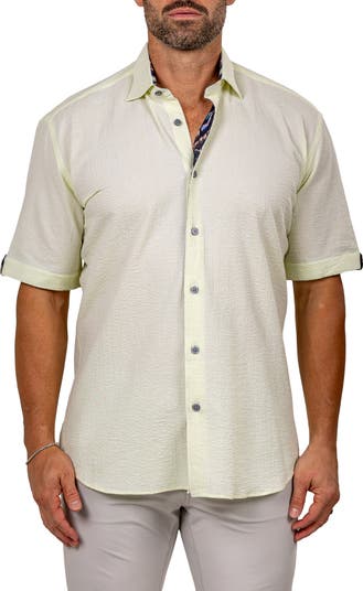 Breathable stretch cotton makes a warm-weather favorite of a shirt tailored in a physique-hugging fit that's the perfect balance between regular and trim with a low hem that looks great untucked. Crafted to resist odors and wrinkles, it keeps you feeling fresh and looking smart even when you don't have to.
