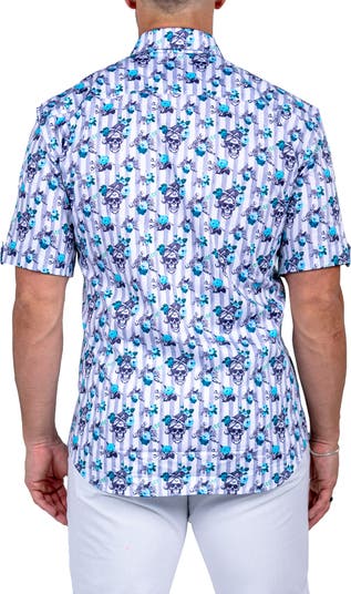 A lightweight stretch-cotton fabric makes a warm-weather favorite of a shirt tailored a physique-hugging fit that's the perfect balance between regular and trim with a low hem that looks great untucked.