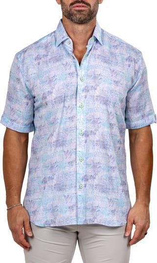 A neat floral print elevates the style of this day-to-night sport shirt tailored for a contemporary fit that's in between trim and regular.