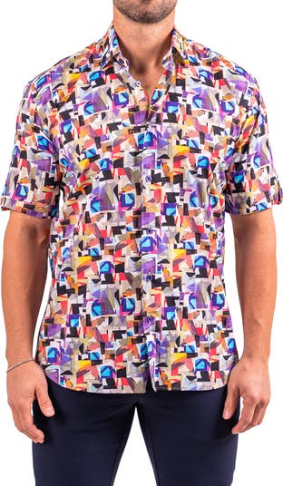 Galileo Resistance Abstract Print Short Sleeve Button-Up Shirt