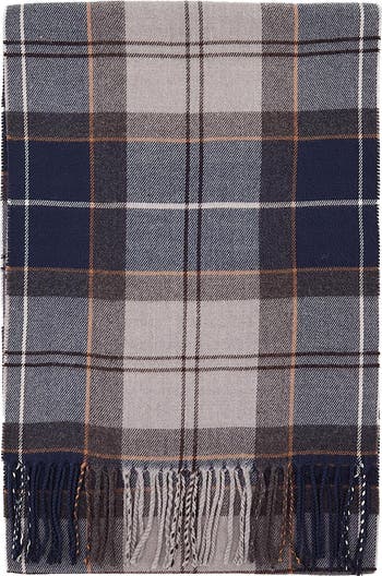 A lightly brushed weave brings softness and warmth to a scarf patterned in a handsome plaid and designed in a length that wraps you in more than enough comfort. Twisted fringe on both ends adds old-school detailing to the all-season appeal.