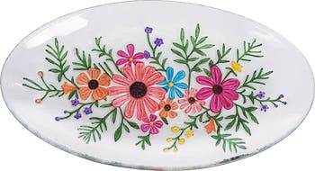 Botanical Floral Bouquet Slump Glass Spring Decorative Oval Dish Plate 7" x 12"