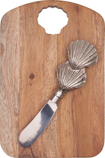 Scallop Shell Coastal Cheese Board Server with Metal Spreader Set of 2