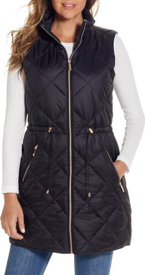 A drawcord-toggle waist adds just the right amount of structure to a diamond-quilted vest topped with a cozy stand collar.