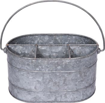 Galvanized Metal Storage Caddy with 4 Compartments and Handle, Grey