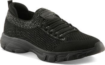 A breathable stretch-knit upper and elastic laces bring flexible ease to this lightweight sneaker cushioned with arch-supportive EVA for lasting comfort.