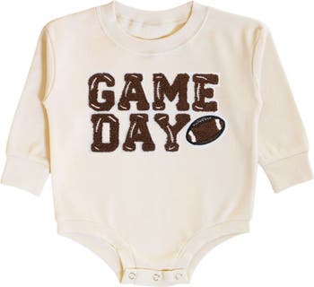 The Game Day Patch Long Sleeve Romper is a fun and cute romper for babies celebrating Game Day!