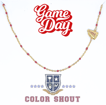 Gameday Side Set Cheerleader Megaphone Necklace with Red Enamel Beads