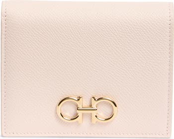 Secure cards, cash and coins in signature Ferragamo style with this pebbled-calfskin wallet handsomely detailed with gleaming double-Gancini hardware.