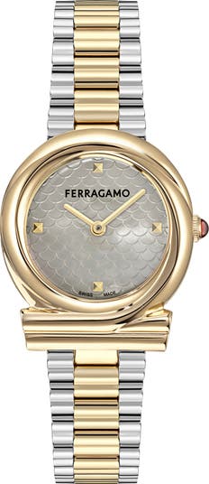 Gancini Mother-of-Pearl Two-Tone Twisted Bracelet Watch, 32mm