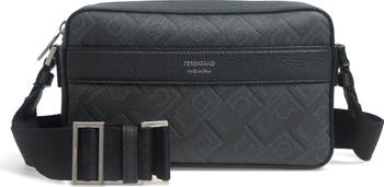 Embossed Gancios bring signature Ferragamo flair to this versatile faux leather crossbody sized to hold your daily essentials and suspended from a wide webbing strap.