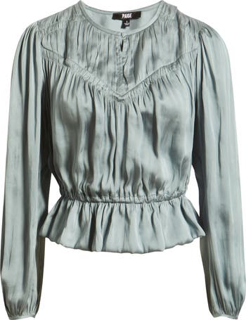 A glossy satin top is perked with a pretty peplum for a look that works for fun or fancy.
