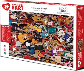 Every great rock band started out in the garage with whatever instruments they could get their hands on. Look for your favorite in this detailed collage of what makes music great in this 24”x30” 1000 piece premium puzzle. By artist Chuck Haney. This detailed puzzle is for the advanced puzzle builder. Lots of samll imagery of your favorite Fender or Marshall speaker. This puzzle is great for an individual to enjoy their free time or a great family activity. The subject matter will surprise and delight a wide range of individuals. This is the perfect gift for the music enthusiastin your life.