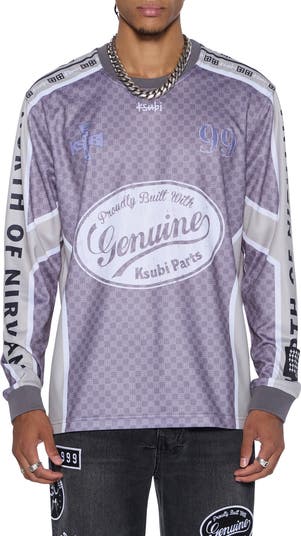 Rev up your downtime look with the digitally printed garage graphics and relaxed fit of this long-sleeve T-shirt cut from a lightweight knit that's straight off the pitch.
