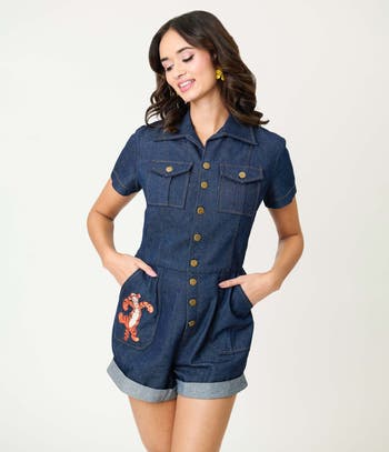 This playful romper features a classic front button-up design and cozy elastic back waist for that perfect fit. With side, chest, and back pockets, it’s not just cute—it’s practical too!