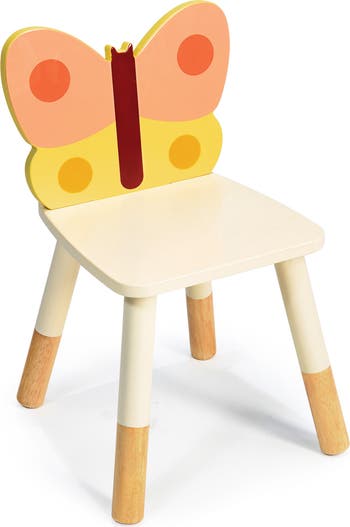 A pretty butterfly is the back for this robust chair with 4 legs made from sustainably sourced rubberwood.