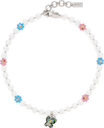 Wearable art meets joyful expression in this flower-powered station necklace from a limited-edition collection created in collab with London-based artist and illustrator Hattie Stewart.