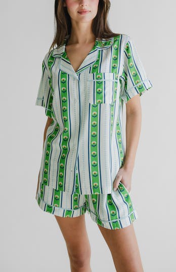 Our Women’s Pajama Shorts Set — is cut in a timeless silhouette with classic piping detail. The shorts’ elastic waist and adjustable ribbon tie ensure a custom, universally flattering fit. 50% Modal & 50% Cotton light and airy with classic piping detail. Shorts have an elastic waist with adjustable ribbon tie.