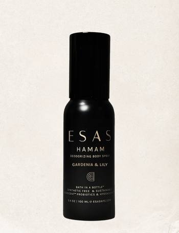 - HOW IT WORKS : Inspired by the ancient Hamam ritual, Esas Hamam Deodorizing Body Spray is your "bath in a bottle," designed to purify, cleanse, and refresh. Rooted in a tradition that dates back to the 14th century, this unique body spray brings the essence of Roman baths into the modern day. Scientifically formulated with the purest ingredients, including Certified Organic Botanical Alcohol*, Witch Hazel, Coconut-Derived Glycerin*, and Esas DeoScent™ Sugarcane Ferment*, it effectively cleanses, deodorizes, and refreshes your skin wherever you go. Enriched with hydrating hyaluronic acid, vitamin E, and antioxidant-rich grape leaf tincture, this spray not only purifies but also nourishes, leaving your skin feeling revitalized and lightly scented. Perfect for an on-the-go refresh, it's the ultimate solution for staying clean, refreshed, and fragrant throughout your day.