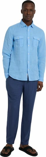 - Flap pockets at the chest and a shirttail hem distinguish the profile of this button-down. It’s tailored to a standard fit from linen that’s been garment-dyed to enrich its tone and soften its handle.
