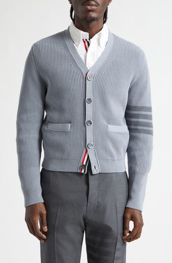 A ribbed cotton knit provides subtle structure to a lightweight cardigan that's garment-dyed to bring deep, rich color to the classic collegiate style. Ringed with signature 4-Bar detailing on one sleeve, it adds a varsity-inspired finish to any layered or between-season look.