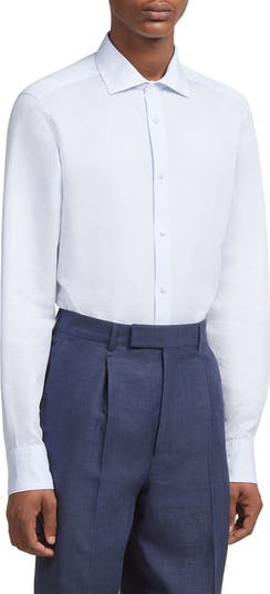 Presented in a delicate blue hue, this long-sleeve button-up is crafted from a garment-washed blend of soft cotton and breathable linen.