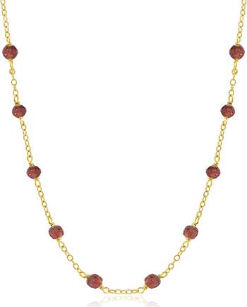 This bead necklace is the perfect pop of color to add to your jewelry collection! This piece can be worn on its own or layered with your favorite necklaces. Also, the perfect birthstone gift for a January baby!